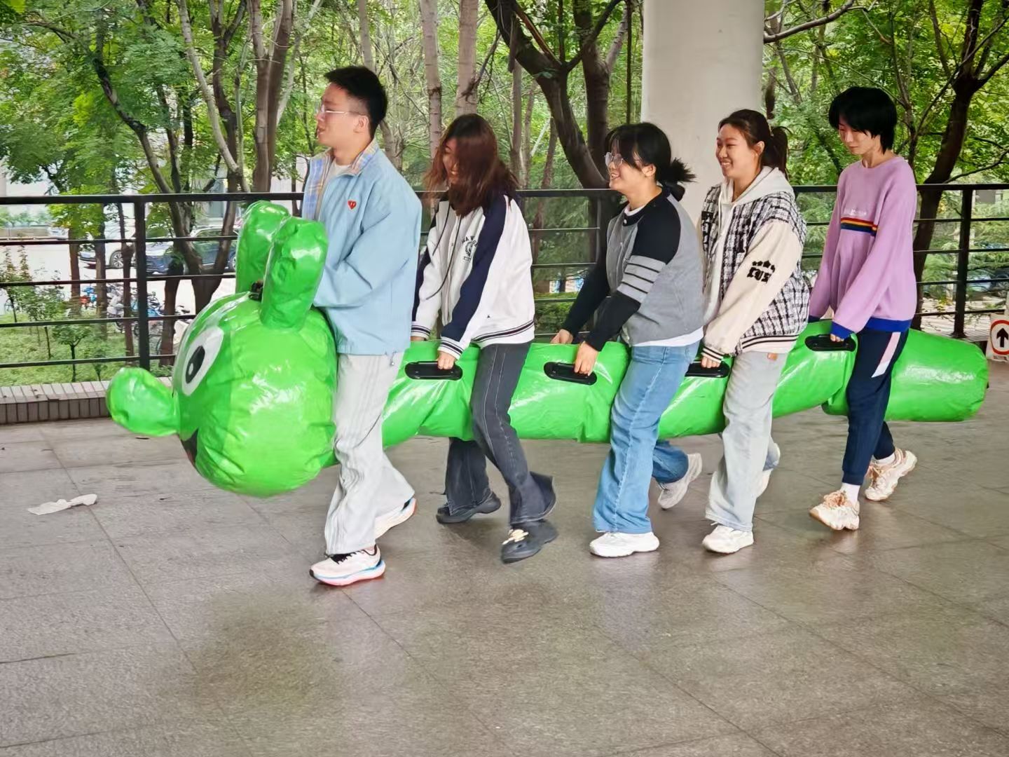 赛场上,“众星捧月”考验平衡与默契,细绳托举小球,步步为营;“毛毛虫竞速”激情四射,同场竞技,于默契配合间驶向胜利彼岸;“龙行天下”环环相扣,凝神屏息,在相接处见证团结之力;“火车快开”节奏欢腾,连成列车步伐铿锵,齐心协力冲向终点。一张张照片定格了飞扬的青春,汇聚成一曲蓬勃跃动的青春交响。